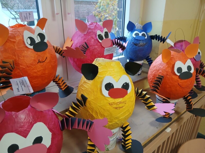 Heute sind unsere schaurig-lustigen Monster-Laternen ausgezogen und haben sich auf den Weg gemacht! Mit ihren riesigen Ohren, breiten Grinsemündern und flauschigen Puschelschwänzen wurden sie heute von engagierten Eltern abgeholt und zur Laternenausstellung gebracht. Dort dürfen sie jetzt stolz ihr schaurig-schönes Leuchten zeigen.
