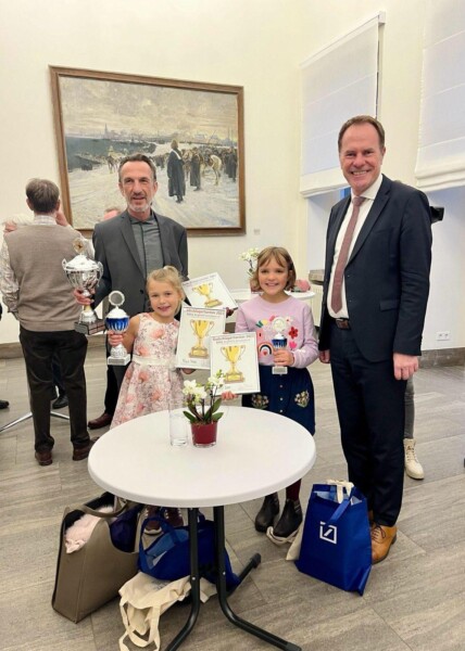 Die 23 Teilnehmenden des Radschlägerturniers der Bürgerhilfe Gerresheim e. V. erhielten heute von Oberbürgermeister Dr. Stephan Keller im Jan-Wellem-Saal des Rathauses den Siegerpokal für die meisten an einer Schule teilnehmenden Kinder. Die Bürgerhilfe Gerresheim veranstaltete am 6. September 2025 im Rahmen ihres Straßenfestes auf dem Gerricusplatz das traditionelle Radschlägerturnier.